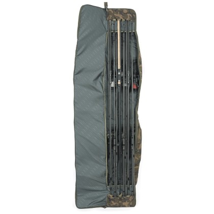 - Комель удилища располагается внутри набитых кармашков с обеих сторон, вершинка фиксируется ремнем на липучке