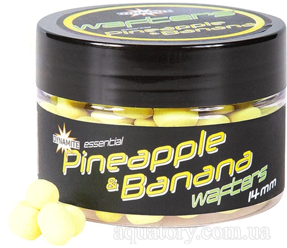 Дамбелсы нейтральной плавучести DYNAMITE BAITS Fluro Wafters - Pineapple & Banana - 14mm - дамбелсы нейтральной плавучести с ароматом ананаса с бананом (Pineapple & Banana) английской компании Dynamite Baits (Динамит Бейтс). Созданы с использованием эфирных масел. Принадлежат к серии флуоресцентных плавающих бойлов Фрэнка Ворвика. Содержат комбинацию мощных аттрактантов и имеют вызывающе яркие цвета заставляя карпа моментально реагировать на приманку. Поставляются баночках с широкой горловиной и закручивающейся крышкой.