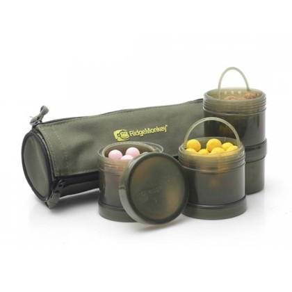 Хранение насадок стало более организованным, и все благодаря новинке от Ridge Monkey – Модулярным Баночкам для Насадок! Отныне Вы раз и навсегда забудете о разбросанных по всей сумке баночках с насадками, которые то и дело протекают – дизайн Модулярных Баночек для Насадок позволяет прикручивать одну баночку к другой, а сама система укомплектована съемными внутренними ведерками-клетками для удобства замачивания и износостойким чехлом для хранения.
