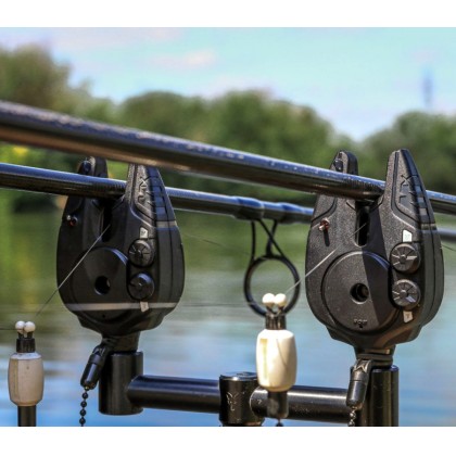 Сигнализаторы имеют 1 внешний разъем питания для использования свингеров с подсветкой. В комплект входит жесткий транспортировочный футляр, фирменный шнурок и 4 пластиковых колпака для защиты сигнализаторов. Питание сигнализаторов от 2 батареек типа ААА, пейджер питается от 3 батареек ААА (не идут в наборе).