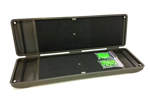Korda Large Rig Safe - большая поводочница для хранения и транспортировки готовых карповых поводков. Двухсторонняя конструкция позволяет вместить до 90 готовых изделий, при этом имеет вполне компактный размер. Размещение поводков происходит по классичской схеме: крючок цепляется за одну из поперечных салазок (в которой, кстати, проделаны углубления для цевья, дабы избежать соскальзывания и спутываний), а конец поводка подкалывается кнопкой к подложке из плотной EVA. В комплекте с коробкой поставляются 30 стандартных кнопок и 20 с двойными иглами. При помощи данного вида кнопок можно закреплять незаконченные поводки, длина которых еще не определена окончательно, вследствие чего отсутствует петля или вертлюг на конце. Коробка изготовлена из противоударного пластика с покрытием Soft Touch. Она не скользит в руках, и приятна на ощупь. На поверхности одной из створок выгравирован стилизованный логотип, а так же линейка с дюймовой и сантиметровой шкалой, что позволит обмерять поводки без каких либо дополнительных инструментов. В данной версии Korda отказалась от использования защелкивающихся замков в пользу магнитных клипс. Сила магнитов подобрана таким образом, что не позволит створкам раскрыться самопроизвольно, однако при необходимости коробка раскрывается легким движением руки. Характеристики: - Большая двухсторонняя поводочница. - Вмещает до 90 поводков длиной 12 дюймов (30.48 см). - Противоударный корпус. - Магнитный замок. - Цвет: зеленый. - Размер (Д х Ш х В): 33.5 см х 11 см х 3.5 см.